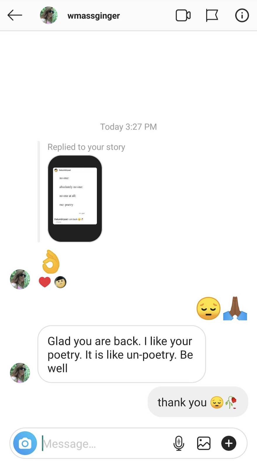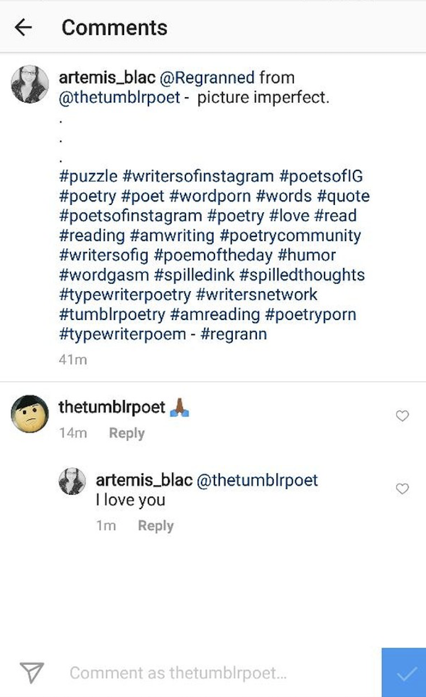 Turns out Instagram poets are a heavily networked bunch, some even forming pods to promote each others' poetry, so making poet-friends was easy.