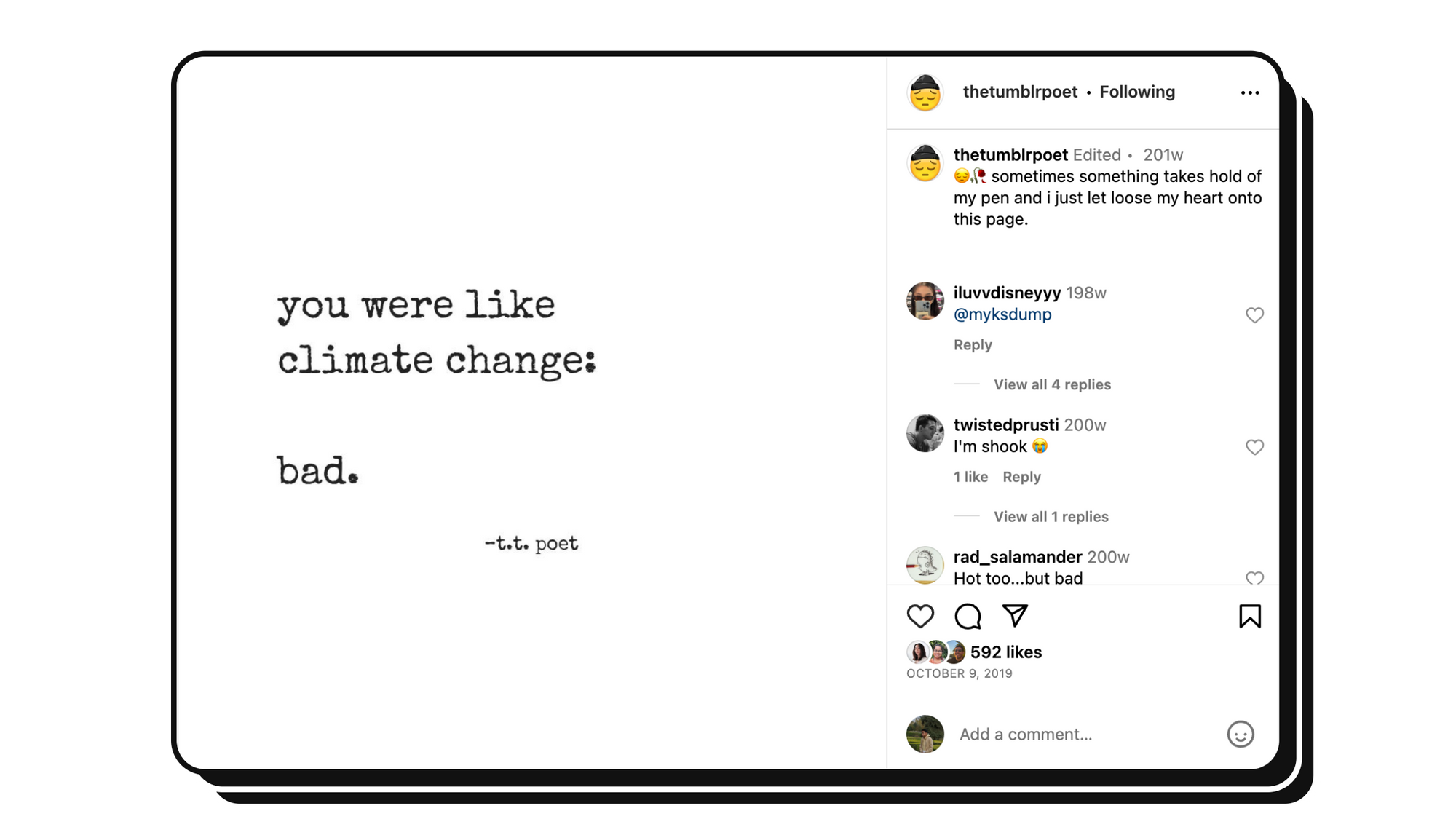 It's almost like poetry was waiting for social media all these years. To carry it (literally) into the hands of the masses. To open poets up to rapid feedback loops, low-barrier merchandising, and the opportunity to grow an audience they could call their own. Writers could now reap the recognition and revenue that most poets of the past never got to enjoy while alive.